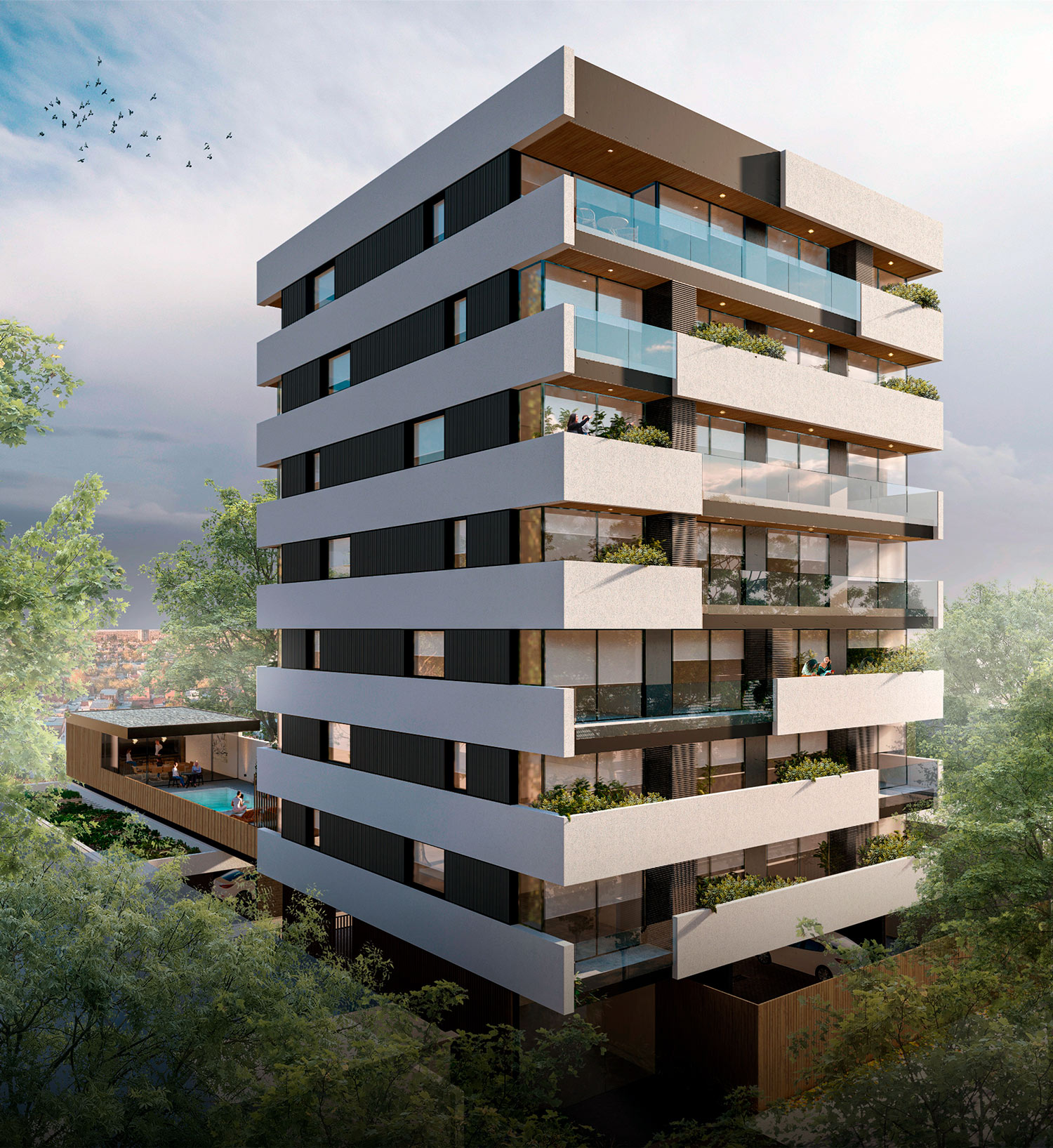 29 residencias exclusivas en el corazón de la Quinta Sección. Unidades de 1, 2, 3 y 4 ambientes, todos con amplios balcones con excelentes vistas.